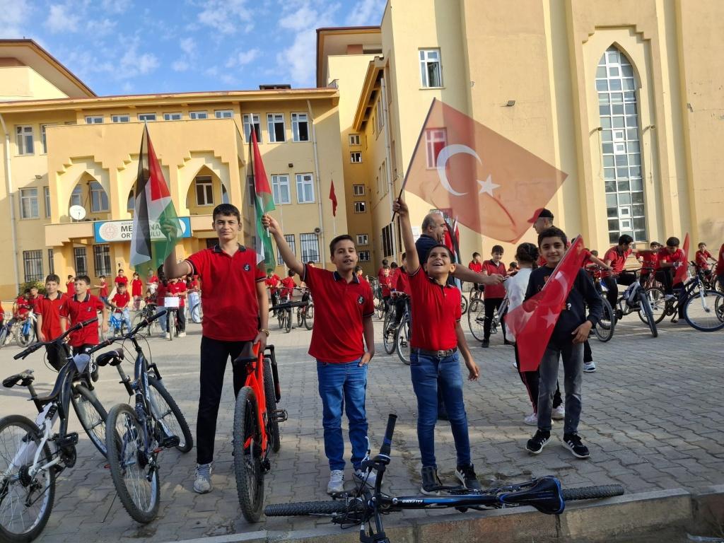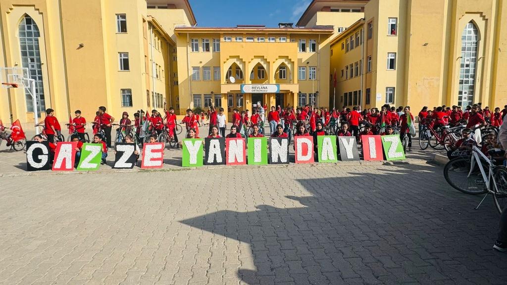 Mevlana Ortaokulu tarafından, Gazze’de yaşanan insani drama dikkat çekmek ve barışa destek olmak amacıyla düzenlenen “Gazze İçin Pedallıyoruz” adlı bisiklet etkinliği büyük bir katılımla gerçekleştirildi.